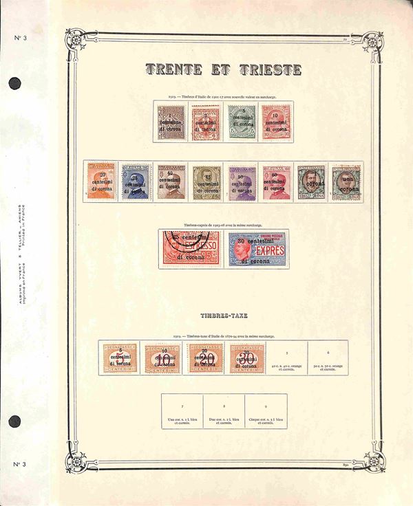 1918/1919 - Municipio di Udine (1) + serie Trento e Trieste (1/11) pił 4 Segnatasse (1/4) e 2 Espressi (1/2) montati su 3 fogli d'album - nuovi e usati