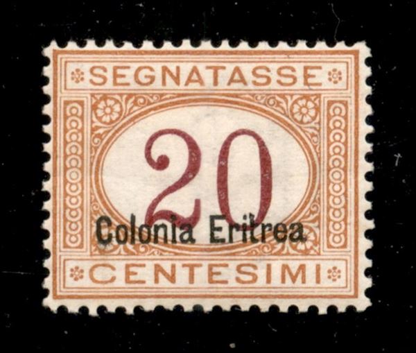 1920 - 20 cent (16) con gomma originale e parte di linguella - ottimamente centrato - molto bello e raro - cert. AG