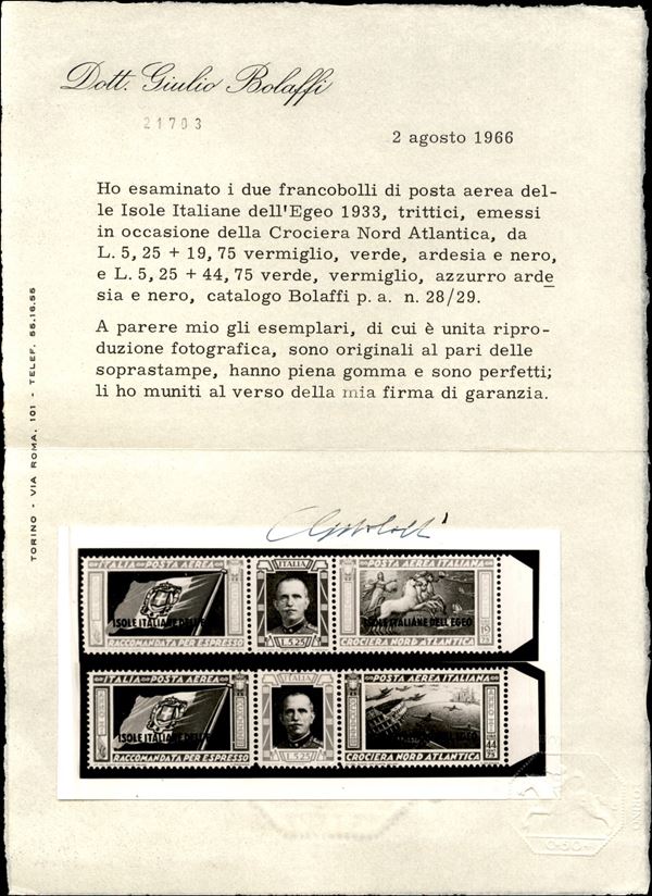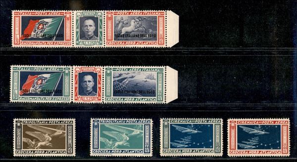 1933 - Crociera Aerea del Decennale - Trittico + le due serie Cirenaica e Tripolitania (28/29 + 18/19 + 28/29) - gomma originale integra - trittico con cert. G. Bolaffi