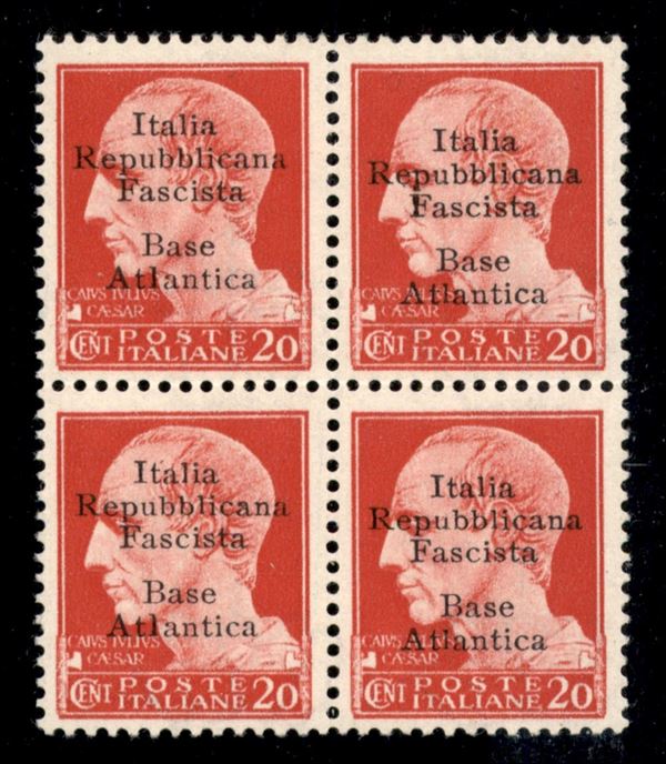 1943 - 20 cent (8g + 8) in quartina - L diversa nei due di sinistra - gomma integra (890+)