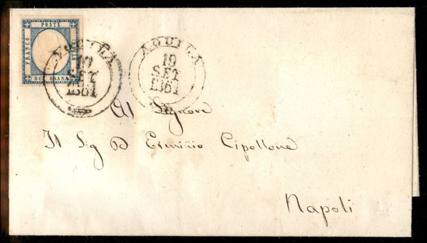 2 grana azzurro chino (20) su bustina da Aquila a Napoli del 19.9.61 - ex coll. Provera