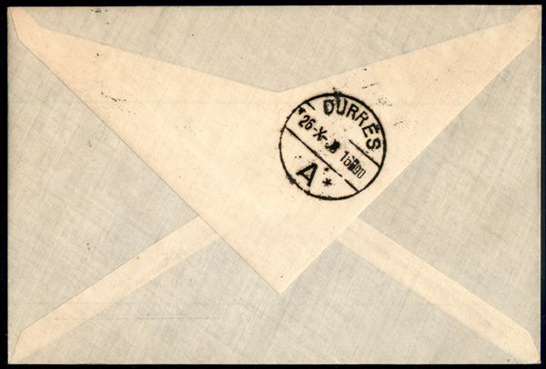 23 ottobre 1932 - Anno Santo - 20 cent (345) + 50 cent (54 - Aerea) - aerogramma FDC da Roma a Durazzo nel giorno d'emissione