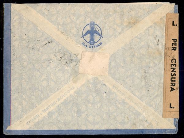 Aerogramma affrancato con affrancatura mista (47 + due 54 + 27 Aerea) da Derna/Vaglia a Udine del 27.10.41 - censure varie