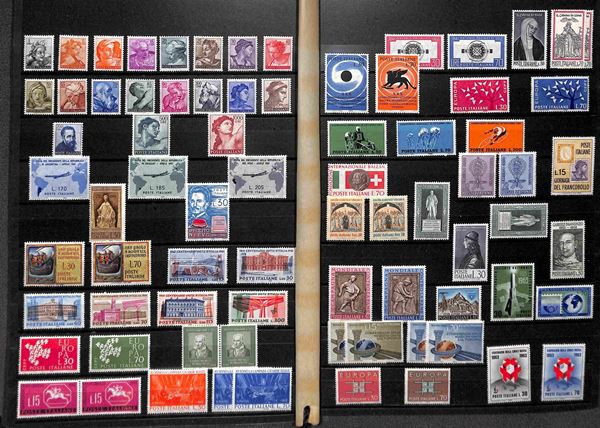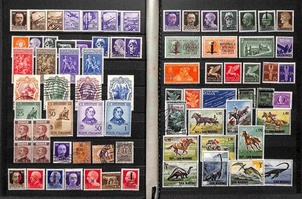 AREA ITALIANA - 1861/1967 - Accumulazione di valori nuovi e usati del periodo in 2 classificatori - tutti valori minori ma comunque ben conservati con qualche buona presenza nel Regno e Repubblica come Perugina Romana Ginnici pił buona parte della Repubblica usata - merita esame