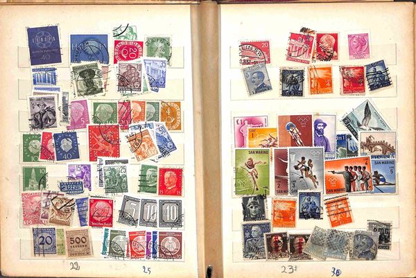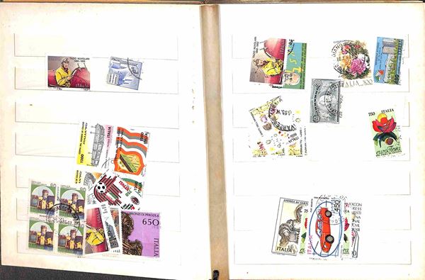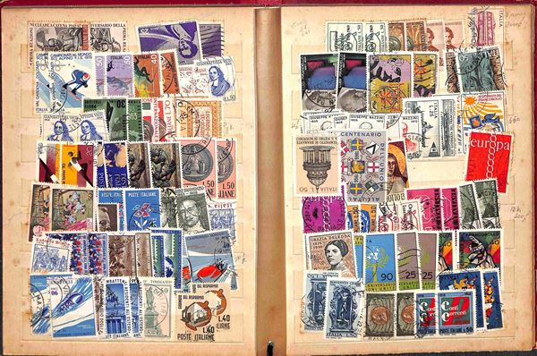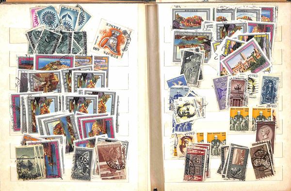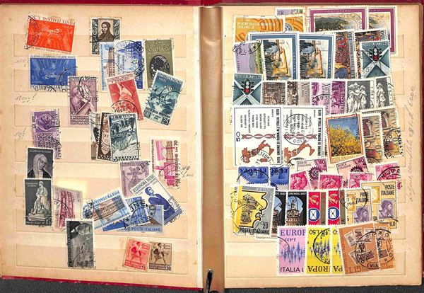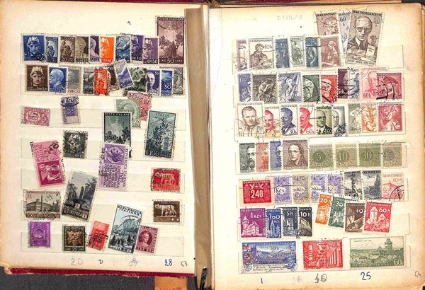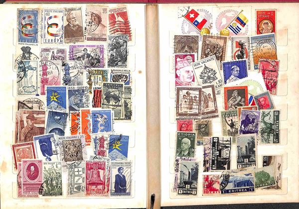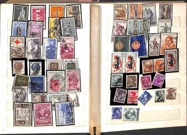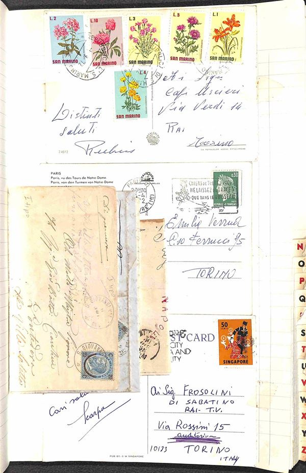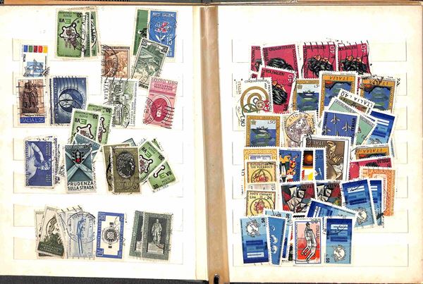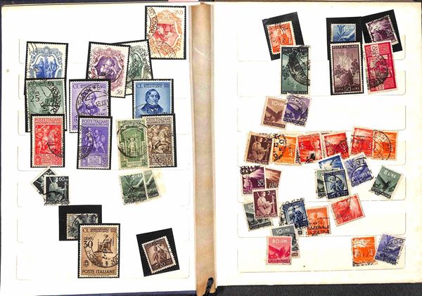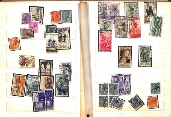 AREA ITALIANA - 1870/1980 - Accumulazione di francobolli e buste del periodo in 11 classificatori + 3 porta buste FDC + 2 libretti postali - molto materiale eterogeneo comprese cartoline paesaggistiche - da esaminare
