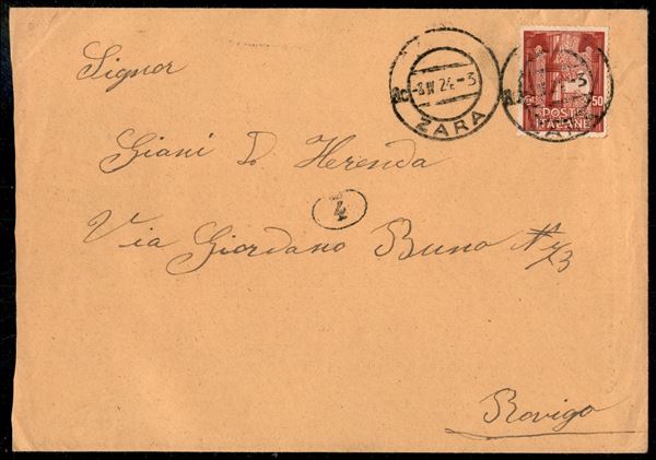 Busta affrancata con 50 cent Marcia su Roma (143) da Zara per Rovigo del 8.4.24 - bollo d'arrivo - ex coll. Provera