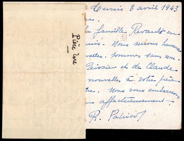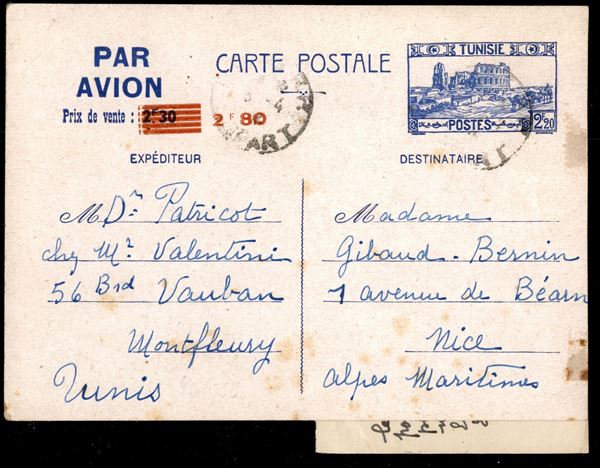 Cartolina postale aerea da Tunisi a Nizza del 3.4.43 – rara