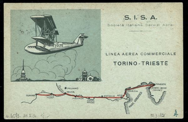 Cartolina S.I.S.A. - Volo Trieste Torino del 5.4.26 - ex coll. Provera