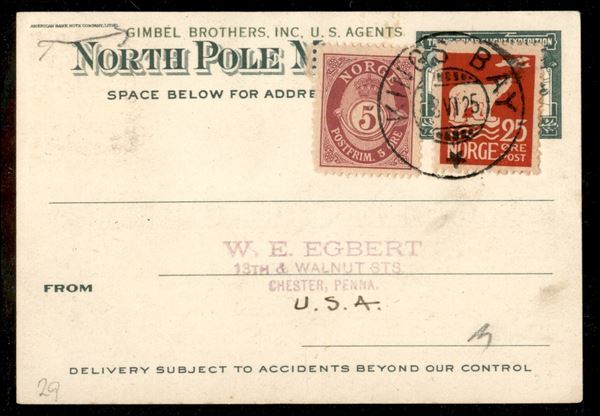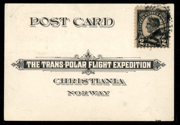 Cartolina "The Trans Polar FlightExpedition" affrancata con valori degli Stati Uniti e Norvegia - Kings Bay 8.6.25 - molto bella