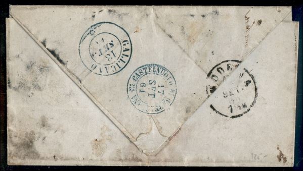 Gallicano (azzurro - P.ti 12) + Castelnuovo di Garfagnana (azzurro - P.ti 11) al retro di letterina da Milano del 15.9.1861 - tassata