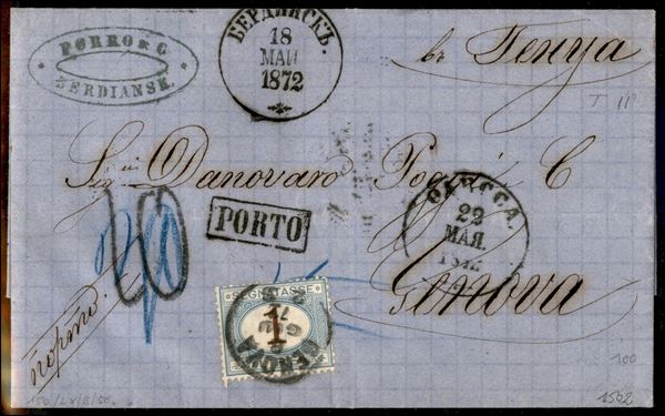Lettera da Berdiansk per Genova via Venezia tassata con 1 lira Segnatasse (11) del 18.5.72 - ex coll. Provera