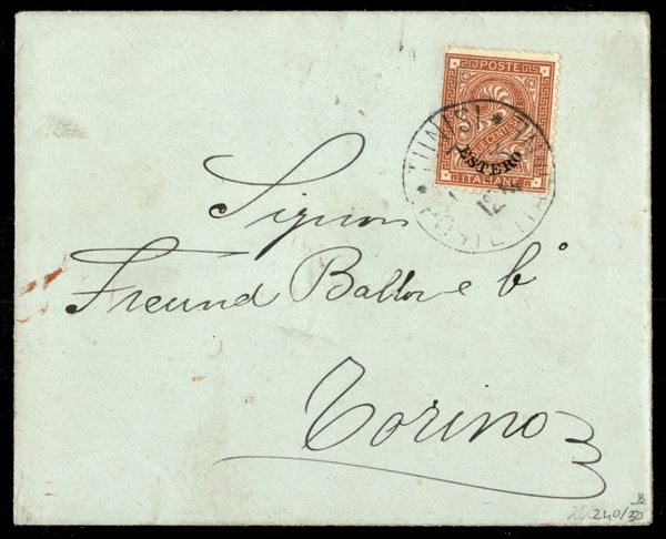 Letterina affrancata con 2 cent soprastampato (2) da Tunisi a Torino - ex coll. Provera