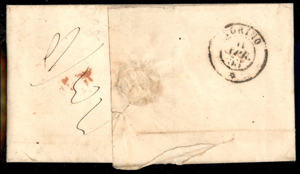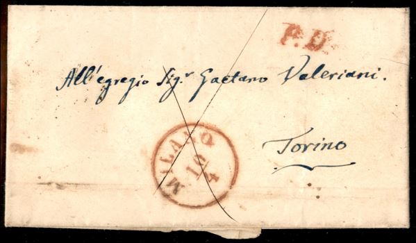 Milano (rosso - P.ti R2) + P.D. - letterina per Torino del 10.4.1853 - tassata