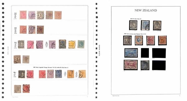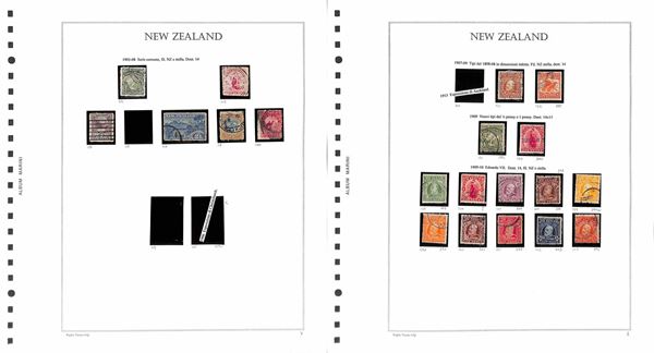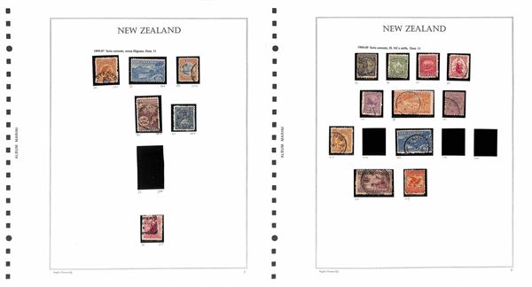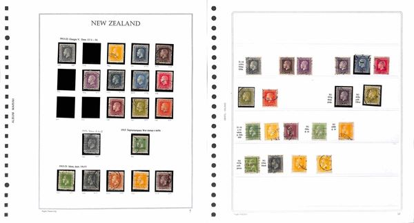 NUOVA ZELANDA - 1877/1960 - Collezione avanzata di valori usati del periodo montati su 19 fogli Marini (artigianali) - merita esame