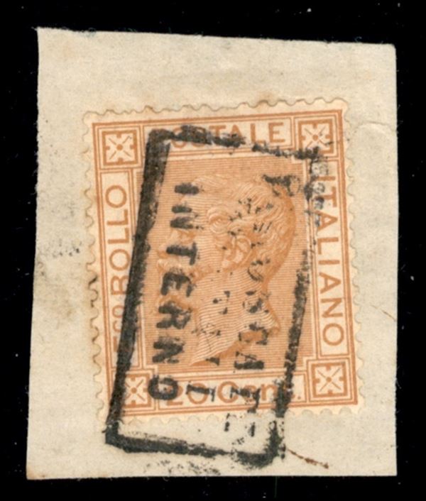 Piroscafi Postali Interno (in cartella) su 20 cent (28) su frammento - cert. Oliva