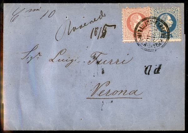 Roveredo 18/5 (manoscritto) + C.mi 10 (manoscritto) + Kufstein Ala Fahrend Postant N. 17 (P.ti 7) + 10 kreuzer (38) - lettera per Verona del 18.5.73