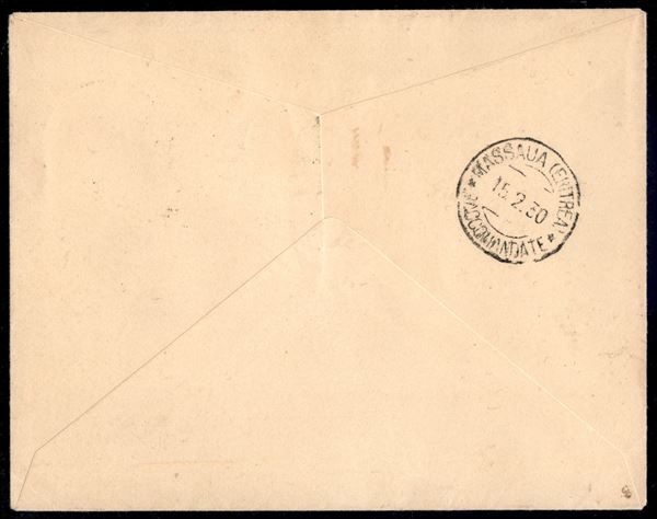 1930 - Roma Mogadiscio - Raid delle Colonie Italiane di Francis Lombardi - Roma Massaua 12.2.30 (Longhi 2077) aerogramma con il carnet speciale del volo in violetto