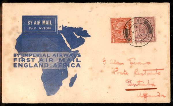 1931 - Imperial Airways - Primo Volo Londra Mwanza (Tanzania) 27.2.31 - aerogramma su busta speciale per Butiaba (Uganda) via Kampala - 25 lettere volate
