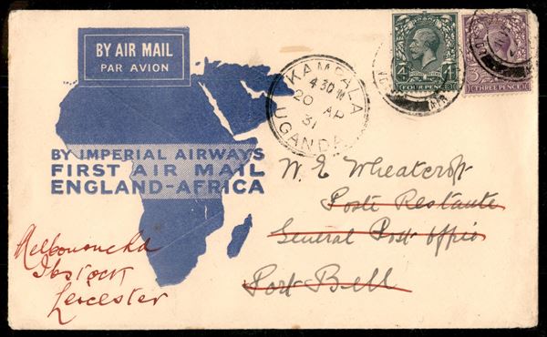 1931 - Imperial Airways - Primo Volo Londra Mwanza (Tanzania) 27.2.31 - aerogramma su busta speciale per Kampala (Uganda) - 30 lettere volate