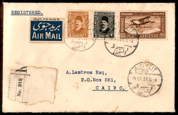 1931 - Imperial Airways - Primo Volo Mwanza Londra 10.3.31 - aerogramma raccomandato da Asyut del 14.3.31 a il Cairo - 30 lettere volate