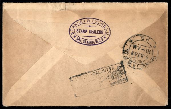 1933 - Imperial Airways - estensione linea Karachi Calcutta - aerogramma su busta speciale da Londra del 1.7.33 a Calcutta (33.13 Newall) - cachet nero al retro "Karachi - Calcutta/8 JLY 33/Friste Air Mail"