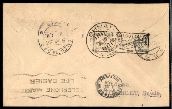 1933 - Imperial Airways - estensione linea Karachi Calcutta - aerogramma su busta speciale affrancato per 180 ore da Bloteberjet del 9.7.33 a Calcutta - cachet nero al retro "Karachi - Calcutta/8 JLY 33/Friste Air Mail"