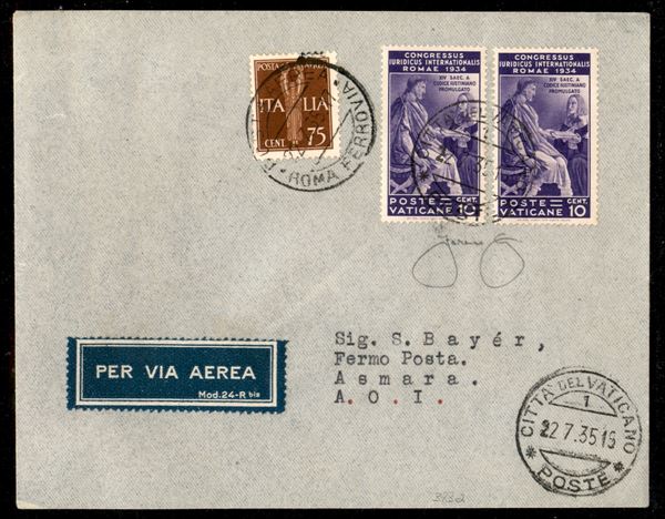 1935 - Vaticano Asmara del 22.7.35 (Longhi 3289) con affrancatura mista Vaticano/Italia - Longhi