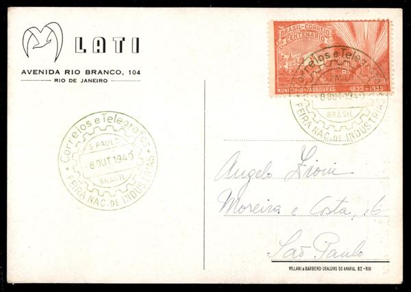 1940 - Cartolina Linhas Aereas para Europa e demais Continentes (Longhi 3960) illustrata da Boccasile per la L.A.T.I. - edita in Brasile - al retro affrancata e annullata San Paulo 8.10.40 - molto bella e rara