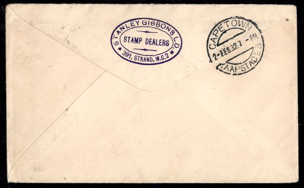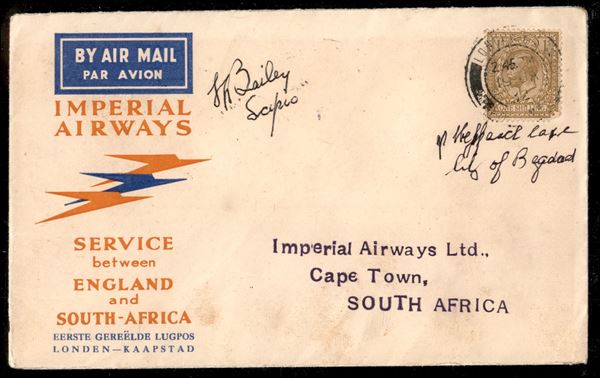 932 - Imperial Airways - Primo Volo regolare Londra Cape Town 20.1.32 - corriere dall'Inghilterra - aerogramma su busta speciale da Londra del 19.1.32 a Cape Town - dispaccio composto da 10 lettere