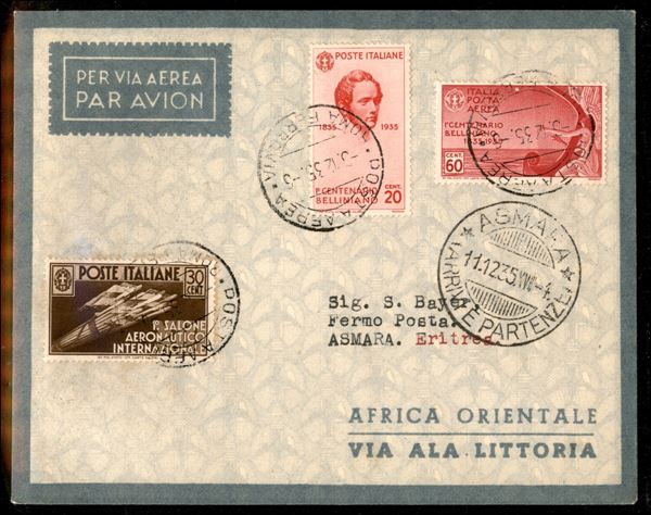 Africa Orientale - Primo Volo Roma Asmara del 3.12.35 (longhi 3407) - dispaccio composto da meno di 20 aerogrammi