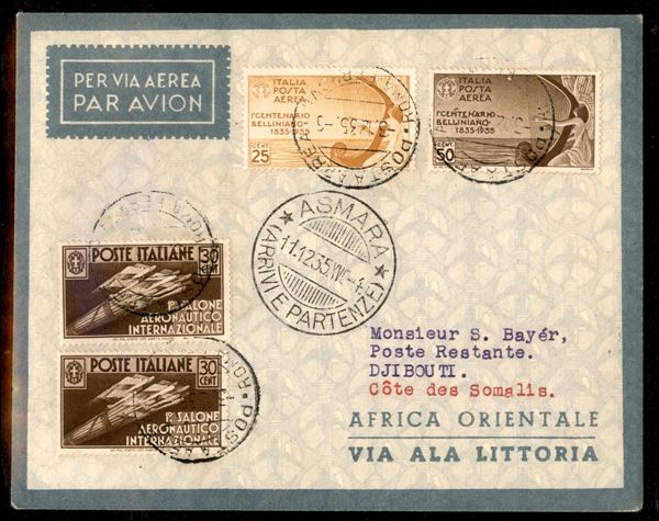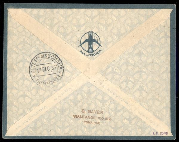 Africa Orientale - Primo Volo Roma Djibouti del 3.12.35 (Longhi 3410) - dispaccio composto da meno di 20 aerogrammi