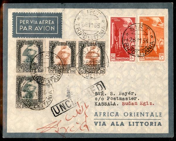 Africa Orientale - Primo Volo Sirte Kassala del 3.12.35 (Longhi 3457) - dispaccio composto da meno di 20 aerogrammi