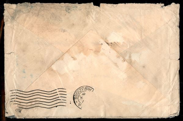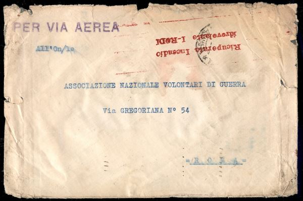 Africa Orientale - Volo interrotto I-RODI - Asmara Roma del 27.9.36 (Longhi 3599) aerogramma recuperato dall'incidente aereo con timbro in rosso "Recuperato Incendio Idrovolante I-RODI"