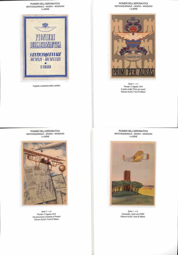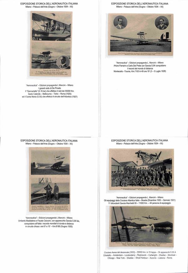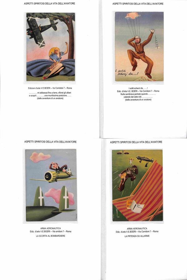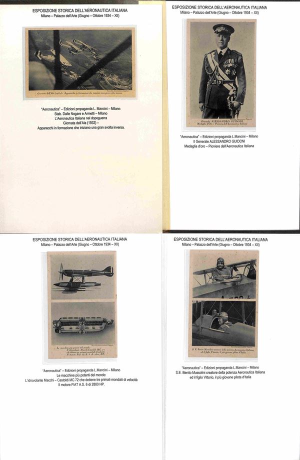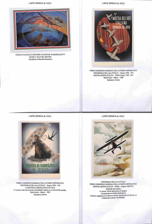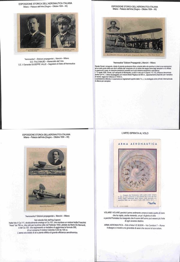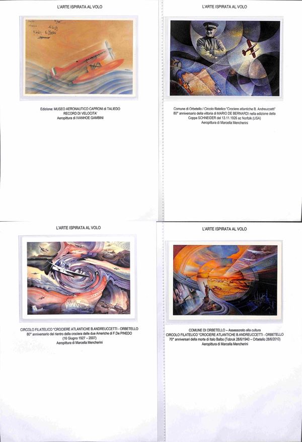 CARTOLINE - AVIAZIONE - 1920/1940 circa - Bellissima collezione di 62 cartoline tematica aeronautica montate su fogli A4 con didascalie - molte belle cartoline di illustratori e serie Pionieri Aeronautica - ottimo insieme