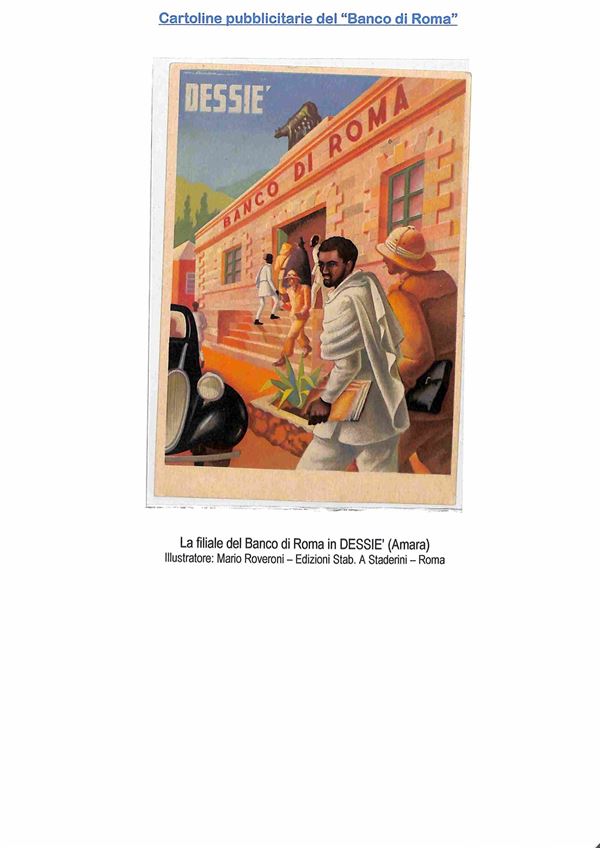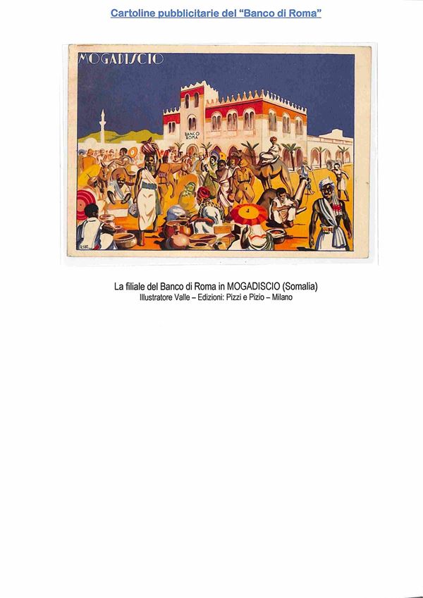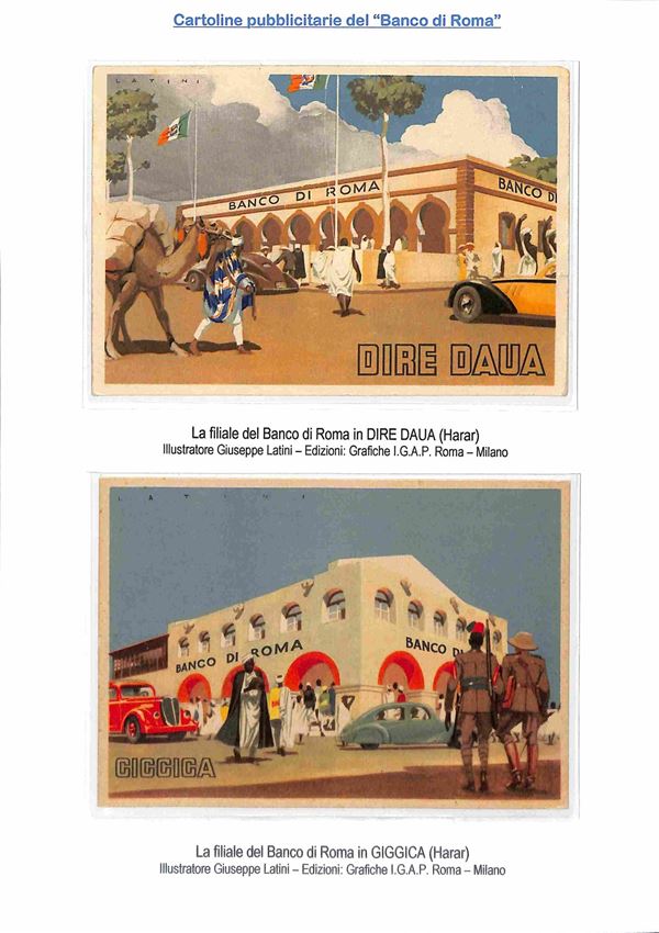 CARTOLINE - BANCO DI ROMA - 1930/1940 - Insieme di 8 cartoline nuove delle diverse filiali coloniali montate su fogli A4 con didascalie