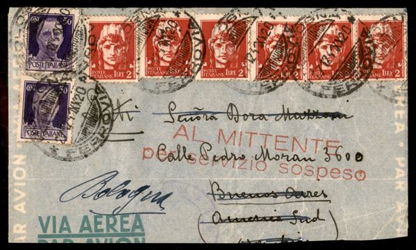 L.A.T.I. - 1941 - Due aerogrammi con timbro "Al Mittente per Servizio Sospeso" e "Zuiruck Postverkehr Eingestellt" rispettivamente dall'Italia e dalla Germania non viaggiati sulla linea LATI per collegamento chiuso