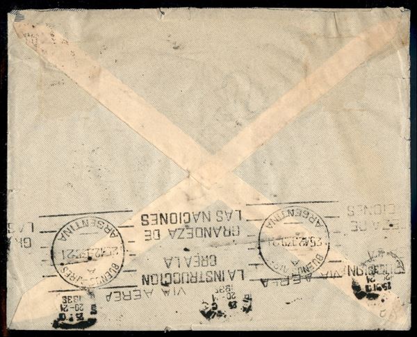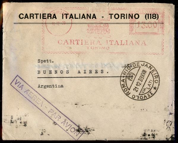 Roma Buenos Aires 21.12.39 (Longhi 3905) busta da Torino con annullo del 2° tipo - non comune affrancatura meccanica