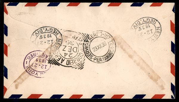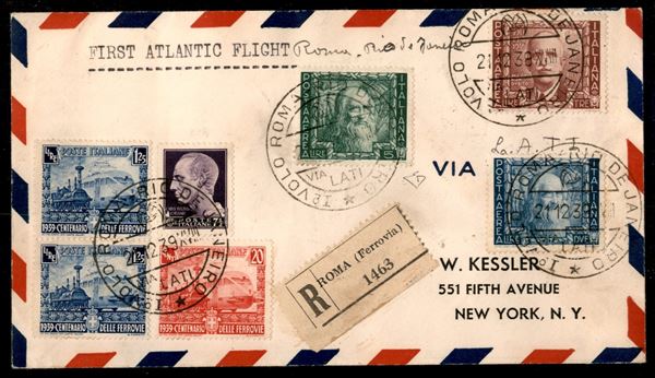 Roma New York 21.12.39 (Longhi 3906) busta raccomandata dall'Italia con annullo 2° tipo - affrancata con 2 + 3 + 5 lire Proclamazione Impero (114/116) - Diena