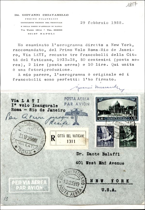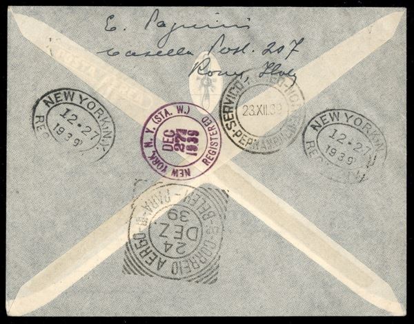 Vaticano new York 21.12.39 (Longhi 3924) busta da Cittą del Vaticano con annullo del 3° tipo - 15/20 aerogrammi volati - raro - cert. Chiavarello