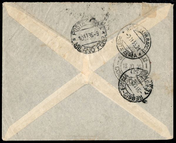 1° Volo Pendolare/1° Pendelfahrt 15/18 novembre 1935 (Longhi 929 - Michel 499 II) busta da Correggio del 9.11.35 - riprodotta a pag 247 del catalogo Longhi - molto raro - ex asta Tresor - Longhi