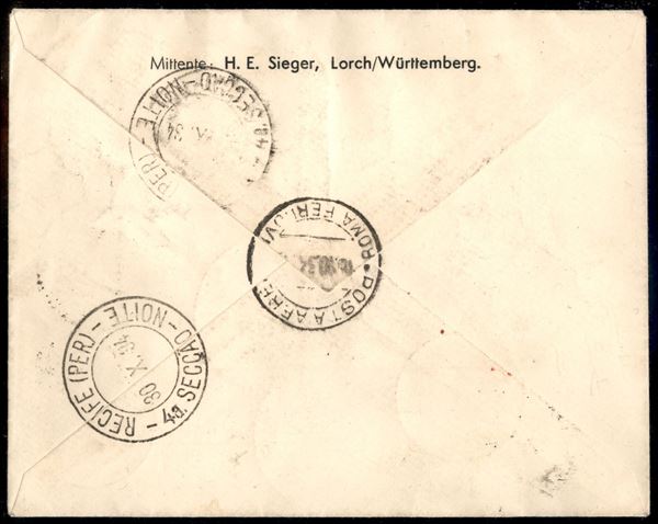 11° Volo in Sud America/11° Sudamerikafahrt 27/30 ottobre 1934 (Longhi 901 - Michel 414) busta dalla Tripolitania - Longhi