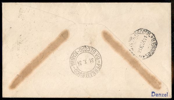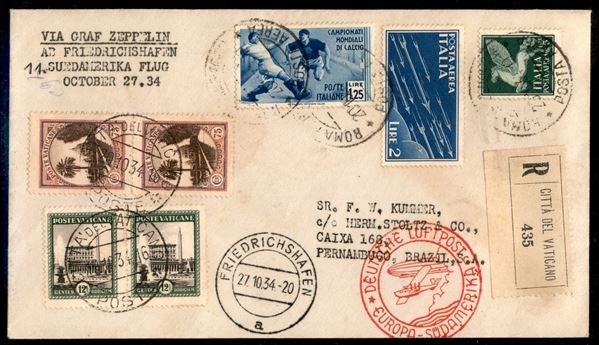 11° Volo in Sud America/11° Sudamerikafahrt 27/30 ottobre 1934 (Longhi 902 - Michel 414) busta da Cittą del Vaticano con affrancatura mista Vaticano + Italia
