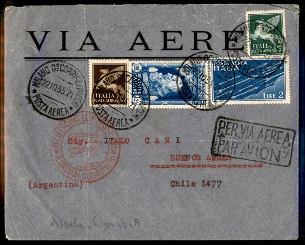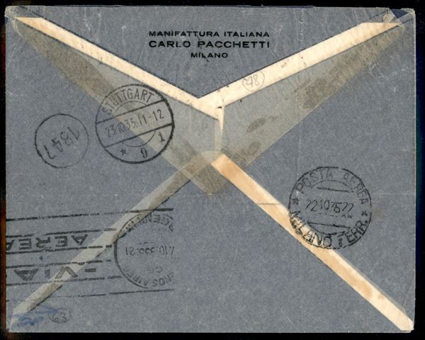 15° Volo in Sud America/15° Sudamerikafahrt 23/26 ottobre 1935 (Longhi 925 - Michel 490) busta da Milano del 22.10.35