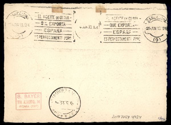 2° Volo in Sud America/2° Sudamerikafahrt - 3/6 giugno 1933 - corriere da Friedrichshafen o Berlino per lancio su Barcellona (Longhi 740 - Michel 305a) cartolina dalla Cirenaica con affrancatura di Posta Aerea