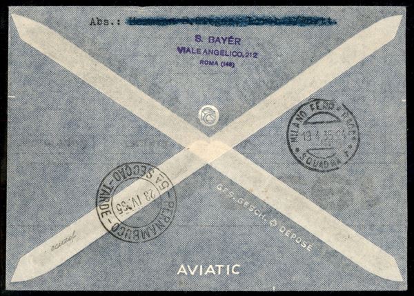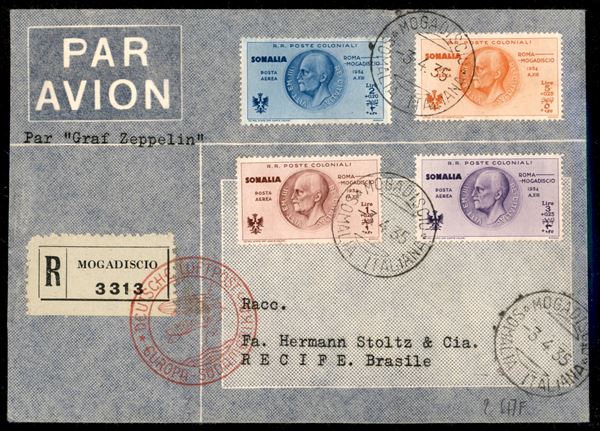 2° Volo in Sud America/2° Sudamerikafahrt 20/23 aprile 1935 (Longhi 915 - Michel 433) busta dalla Somalia