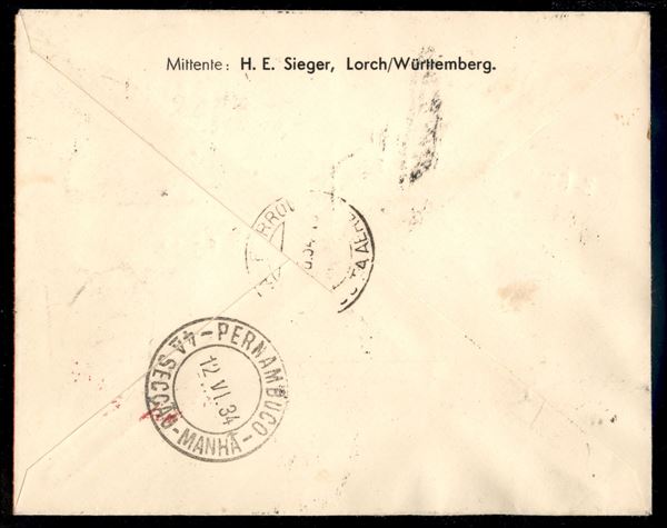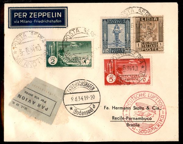 2° Volo in Sud America/2° Sudamerikafahrt 9/12 giugno 1934 (Longhi 862 - Michel 366) busta dalla Cirenaica