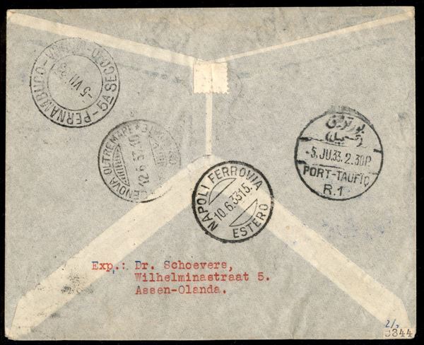 3° Volo in Sud America/3° Sudamerikafahrt -1/4 luglio 1933 - corriere da Friedrichshafen e diretto in Sud America (Longhi 768 - Michel 315) busta da Asmara per Pernambuco - 2 lettere note - molto raro