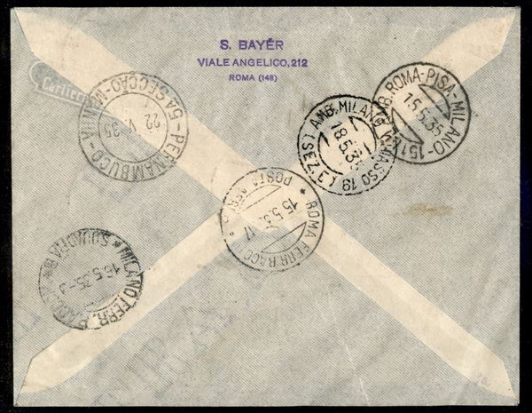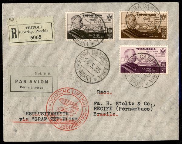 4° Volo in Sud America/4° Sudamerikafahrt 19/21 maggio 1935 (Longhi 917 - Michel 442) busta dalla Tripolitania