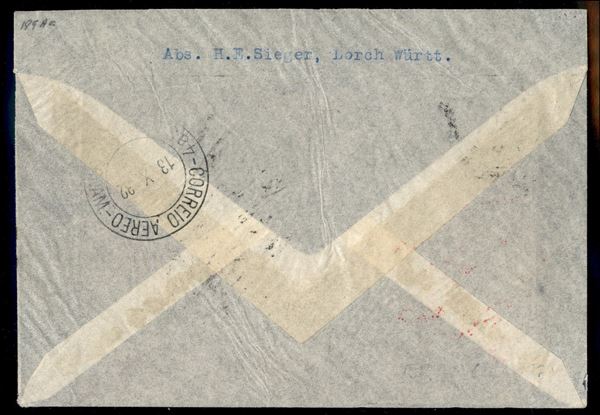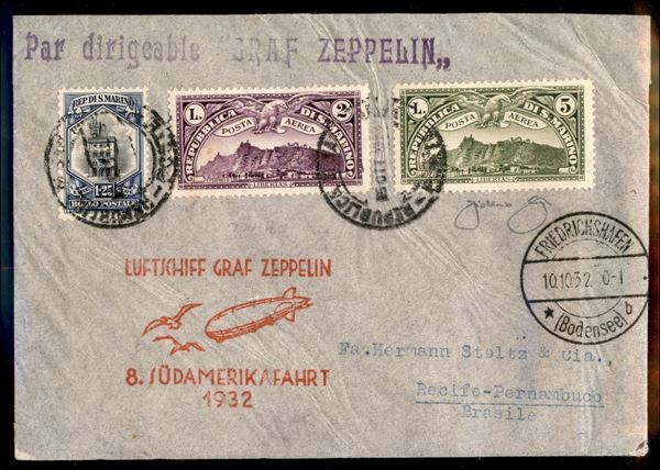 8° Volo in Sud America/8° Sudamerikafahrt - 9/13 ottobre 1932 (Longhi 158 - Michel 282a) busta da San Marino del 5.10.32 per Recife - Longhi