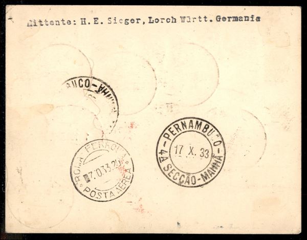 9° Volo in Sud America/50 Ozeanuberquerung Chicagofahrt 14ottobre/2 novembre 1933 - Friedrichshafen Recife (Longhi 814 - Michel 347a) busta dalla Cirenaica